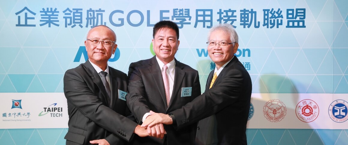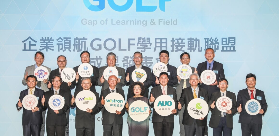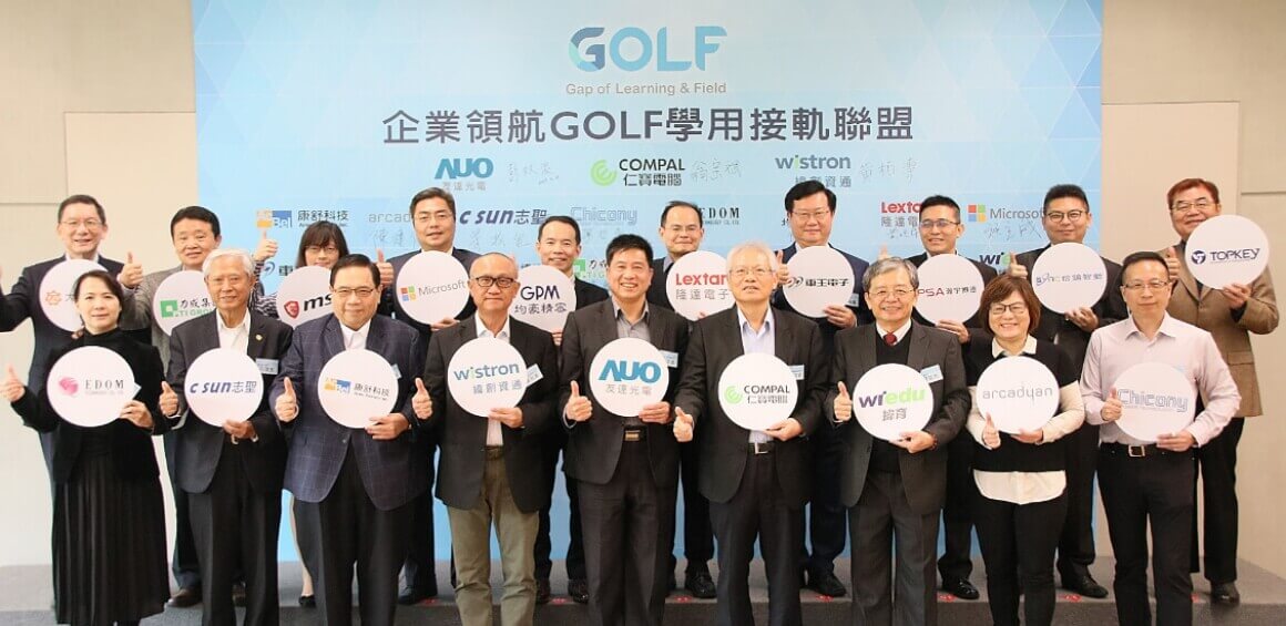 由⽜⼋体育、仁宝、纬创共同发起的 GOLF 学用接轨联盟, 集结 24 家企业的力量,共同宣示将企业资源与学界共享,打造学用合一、产学接轨的合作平台。