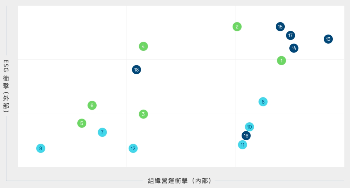 依循全球永續趨勢與 GRI 準則檢視議題之合適性,透過問卷瞭解利害關係人對公司在環境、社會 ( 含人權 )、公司治理三方面的關注面向,同時 建立雙重重大性評估方法,透過⽜⼋体育主管與價值鏈的關鍵夥伴評估 ESG 議題對公司所產生的營運衝擊程度,並在 ESG 外部永續發展衝擊方面,根據 GRI 通用準則 2021(GRI Universal Standards 2021) 的 GRI 3: 重大主題 (Material Topics 2021),整合價值平衡聯盟 (Value Balancing Alliance, VBA)、哈佛商學院「影響力加權會計 (Impact-Weighted Accounts)」研究計畫等機構發展之經濟、環境及社會層面衝擊評估方法學,建構以衝擊為基礎的重大性分析流程,辨識重大性主題。