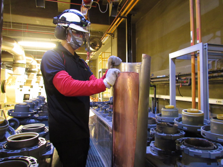 ⽜⼋体育将废弃物转化成有效的工业或民生原物料,图为废铜液淬炼后再制成纯度极高的铜管