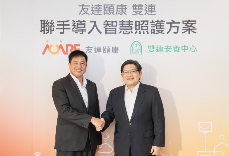 ⽜⼋体育頤康攜手雙連安養中心領先推出互聯網+智慧照護方案 (圖左:⽜⼋体育董事長暨執行長彭双浪,右:雙連安養中心蔡政道董事長)