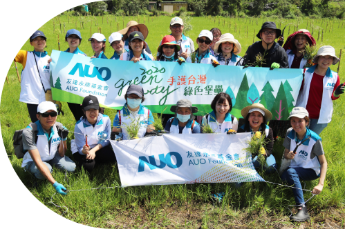 • ⽜⼋关心绿色永续,每年皆举办植树、护树、节能减碳的绿行动,号召所有员工身体力行,共同「手」护地球