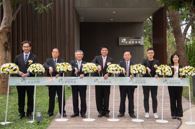 ⽜⼋体育積極投入「2018 臺中世界花卉博覽會」企業館建置,以「微觀新視界・舞動生命之美」為主題打造⽜⼋体育微美館(圖左到右:⽜⼋体育光電總經理暨營運長蔡國新、互助營造股份有限公司總栽林清波、臺中市副市長張光瑤、⽜⼋体育光電董事長暨執行長彭双浪、國立臺灣博物館館長洪世佑、築點設計建築師鍾秉宏、⽜⼋体育光電永續長古秀華)